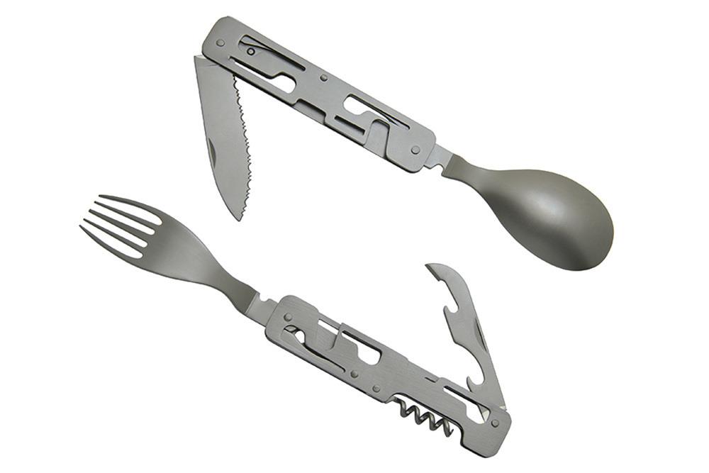 Complete with its 6 functions, light and protected in a reinforced neoprene cover, this cutlery will accompany all your meals, for faraway journeys as well as lunches in the park. Cutlery set in food grade stainless steel, wirth titanium coating presented in a dark grey neoprene pouch.