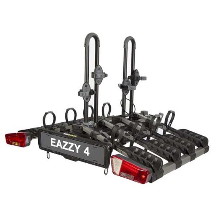 Fully foldable EAZZY series offer convenient mounting, user-friendly functions and compact storage. The ratchet cradle is the perfect solution to attach the bike frame. It is also a great solution for carbon frames as it does not apply pressure to the carbon tubes. The BUZZRACK Eazzy 4 is a really well designed, well engineered piece of kit; smart, sophisticated and very good value for money. Easy! The Eazzy 4 is very easy to fold which makes for easy lifting, easy carrying, easy fitting, easy storage in the car boot when you are out for a ride. Folds to store in the car: this is really useful, because damage to tow bar carriers in car parks from other vehicles can be an issue. A tow bar carrier will almost certainly make your car much too long for a standard car parking space. More detail about folding: because the support trays fold into the bike holder uprights (there are straps to hold them closed) the Eazzy 4 is easy to carry around, easy to fit and remove, and easy to store. The metal parts are steel, not aluminium, and it weighs almost 20kg, but because it's a vertical 2-handed lift it feels much lighter than this, and there should be no strain on your back when moving it and fitting it. Most 4 bike wheel support racks are relatively very awkward and hard work to handle compared to the Eazzy 4.