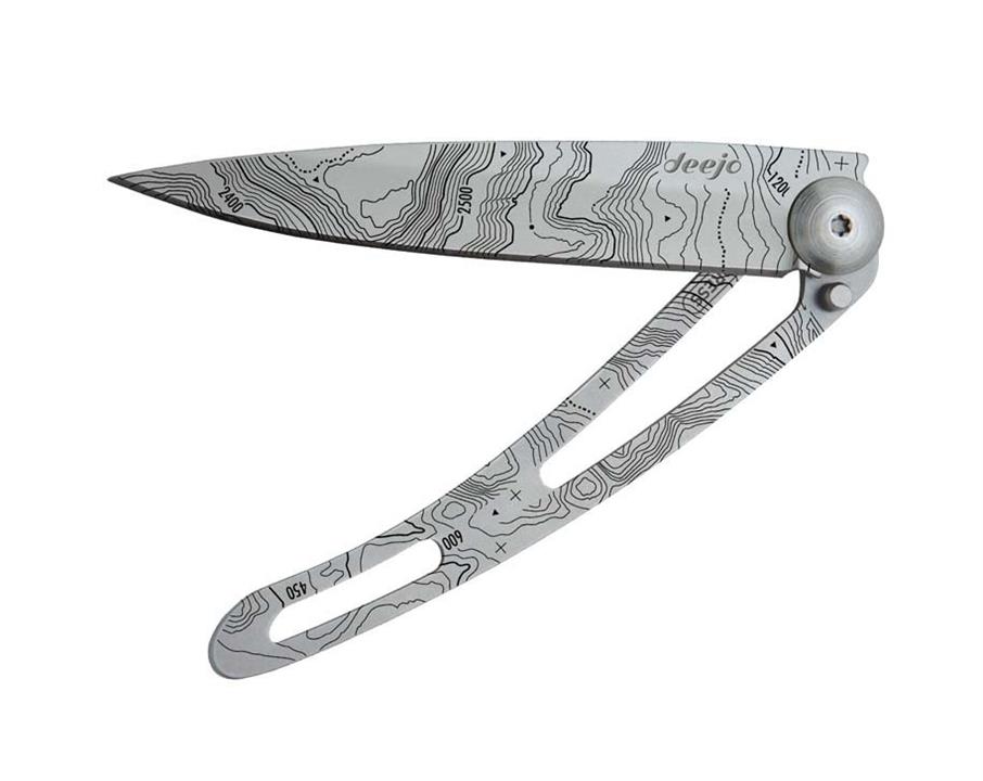 Deejo Serration Lightweight Folding Knife – Black/Coral Wood/Topography – 37g