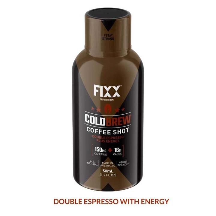 FiXX Nutrition Cold Brew Coffee Shots contain the equivalent of a Double Espresso in terms of the amount of caffeine. There are 3 Brews in the range including and Energy Espresso, Mocha & Sugar-Free Espresso. Served in a handy travel bottle, FiXX Cold Brew Coffee Shots are ideal as a Pre-Workout caffeinated energy kick, Mid-Workout boost and are perfect for work, play, car & travel. The small batch brewed cold brew coffee delivers a sweet, silky smooth taste that is exceptionally easy on the palate and stomach. We recommend drinking these shots straight for the ultimate taste and buzz. Or for a delicious, quick & easy Iced Cold Brew simply add chilled water, your favourite milk or ice cream to a pre-chilled FiXX espresso shot. All FiXX Nutrition products are 100% natural, gluten-free, & vegan, and are made in Australia to HACCP quality standards.