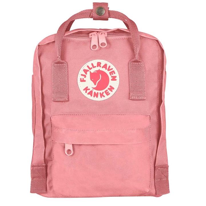A scaled-down version of the Kanken backpack with long shoulder straps that can be adjusted to fit both children and adults. Small front pocket, removable seat cushion and a reflective logo. Kanken was created in 1978 to help prevent back problems among Swedish school children and, since then, has become one of Fjallraven's most appreciated products. The Mini-version is suitable for small children as well as for full grown adults who are looking for a small backpack. It is perfect for carrying a change of clothes for preschool or food on an outing, and as a smart everyday bag for books, water bottles, fruit and more. The shoulder straps are long and adjustable and fit both small and big backs. They can be fastened with a clasp so that they are not in the way when at their tightest. The material is hard-wearing, lightweight Vinylon F fabric that is able to withstand dirt and wetness. The main compartment has a large zipped opening, which makes it easy to pack and unpack. Two flat side pockets and a zipped pocket on the front. The included PE foam seat cushion is stored in the interior back pocket and also prevents the contents in the main compartment from poking against your back. Handles at the top and slender, adjustable shoulder straps. The logo on the front is reflective. It also has an address label inside the main compartment.