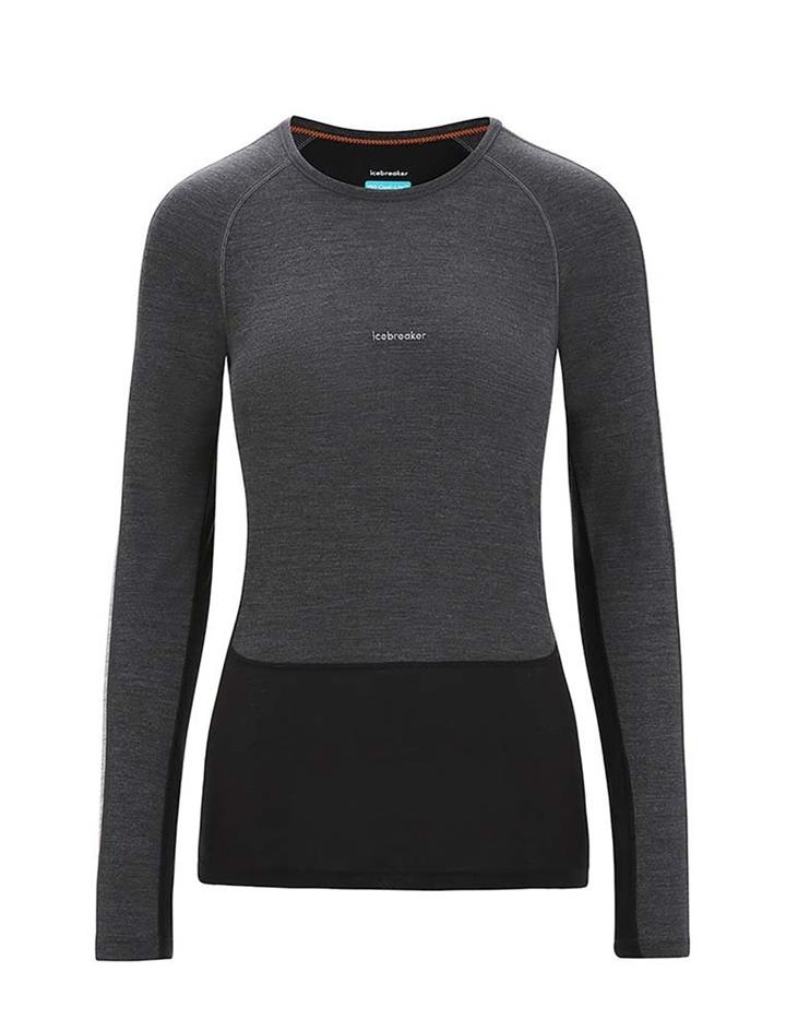 Icebreaker 125 ZoneKnit LS Crewe Womens Thermal Top – Jet Heather/Black – XS