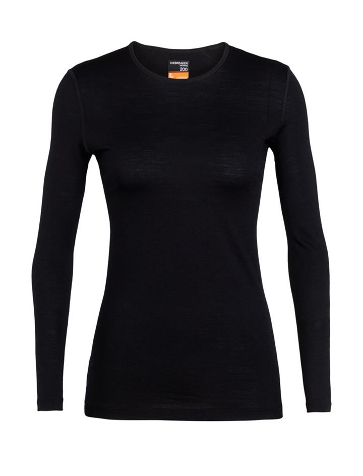 Icebreaker Oasis 200 Womens Long Sleeve Thermal Base Layer Crewe – Black – S