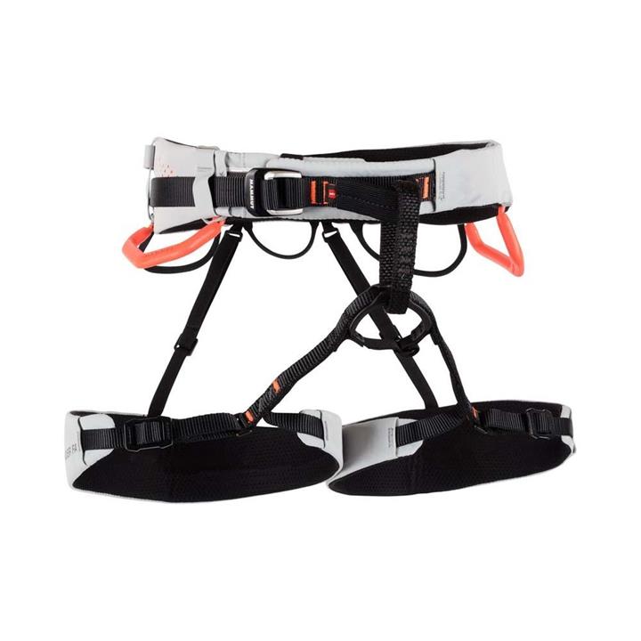 The lightest MAMMUT climbing harness with adjustable Fast Adjust leg loops. Highly breathable and extremely lightweight harness specially for performance sports climbing. The laser-cut fabric offers exceptional breathability and robustness, while split webbing technology ensures optimum weight distribution. The Fast Adjust buckles on the leg loops make it possible to adjust the width of the leg loops in seconds without worrying about an additional belt strap.