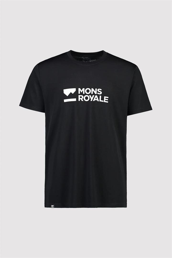 Mons Royale Icon Merino Air-Con Mens T-Shirt- Brand Lock Up – Black – L